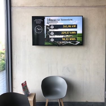 Hoher und unberechenbarer Strombezug in Gewerbebetrieben wird deutlich mit dem Ausbau der E-Mobilität steigen. Auch die Belastung der Netze mit Leistungsspitzen die dann hohe Bereitstellungskosten verursachen werden. Bei Gewerbelösungen setzen wir immer Energiemanagementsystem in Verbindung mit PV und Speicher ein. So hat der Kunde sein Strombezug unter Kontrolle und ist sofort für die Zukunft gut aufgestellt. Die hier aufgeführte TV-Lösung ist eine Option die auch werbewirksam mit eigenen Werbung belegt werden kann.